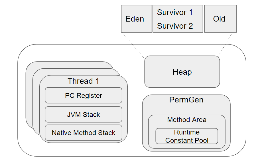 대표적으로 Oracle의 Hotspot JVM Heap구조를 살펴보도록 하겠다
